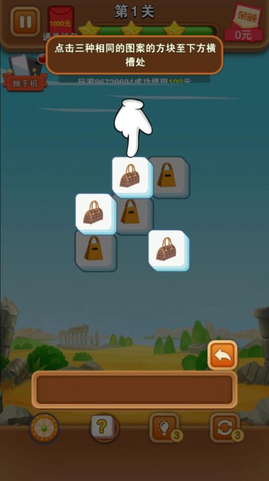 非常卡通化的图形 ,任何人都可以轻松入门。2、更有趣的声音效果,单击底部水平栏中的三个相同图案以完成删除任务。有很多机会获得红包。神奇而有趣的游戏 ,有很多淘汰赛,并且在保存了一定数量后就可以立即收到。